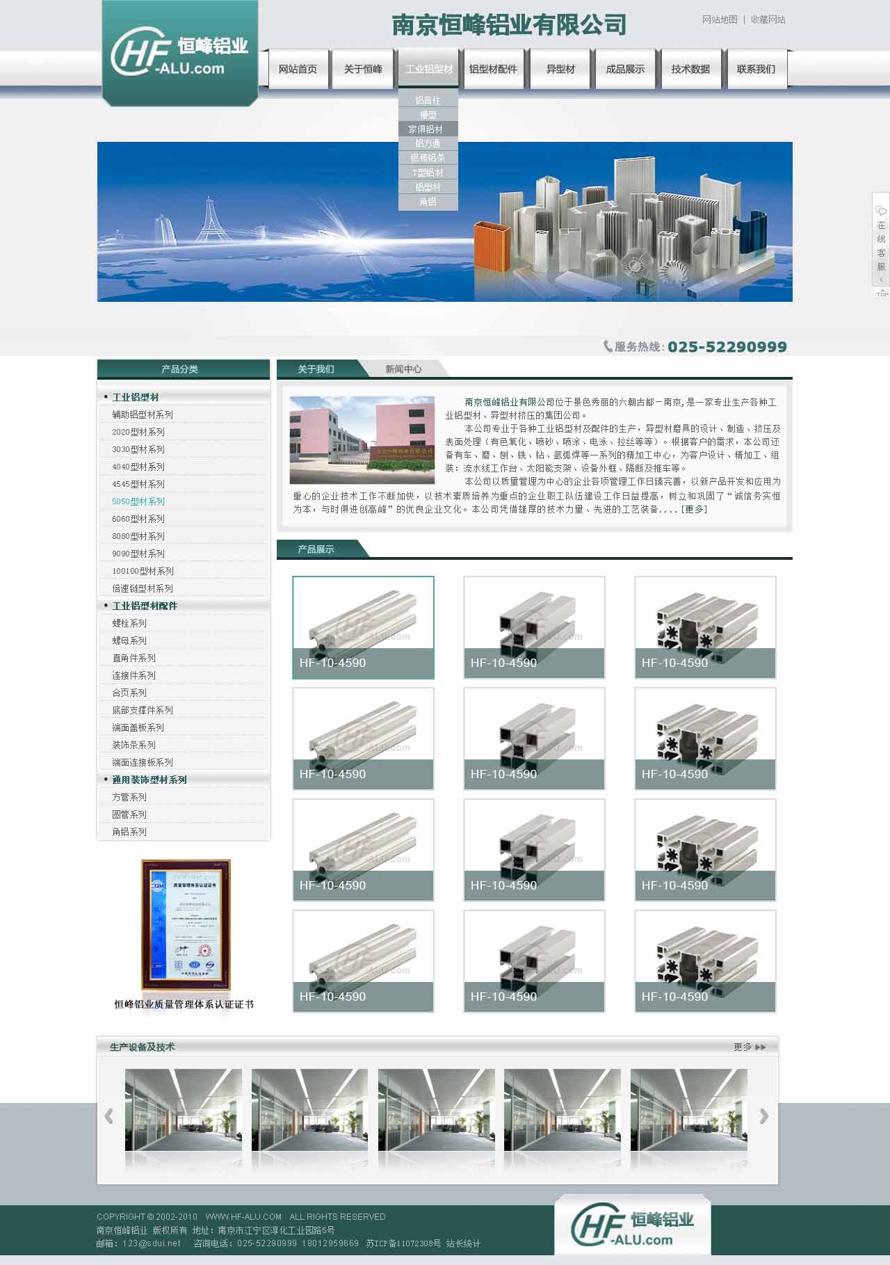 南京恒峰铝业有限公司专业于各种工业铝型材及配件的生产,异型材磨具的设计、制造、挤压及表面处理(有色氧化、喷砂、喷涂、电泳、拉丝等等)。根据客户的需求,本公司还备 有车、磨、刨、铣、钻、氩弧焊等一系列的精加工中心,为客户设计、精加工、组装:流水线工作台、太阳能支架、设备外框、隔断及推车等。